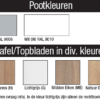 – Blad in de kleuren: betonlook, midden eiken, natuur eiken, wildperen, havanna, bruin eiken, lichtgrijs en wit