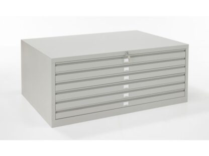 De tekeningladenkast heeft een buitenmaatvoering van: 58cm hoog, 113cm breed, 83cm diep. De binnenmaatvoering van de tekeningladekast betreft: 5cm hoog, 102cm breed, 73,5cm diep.
